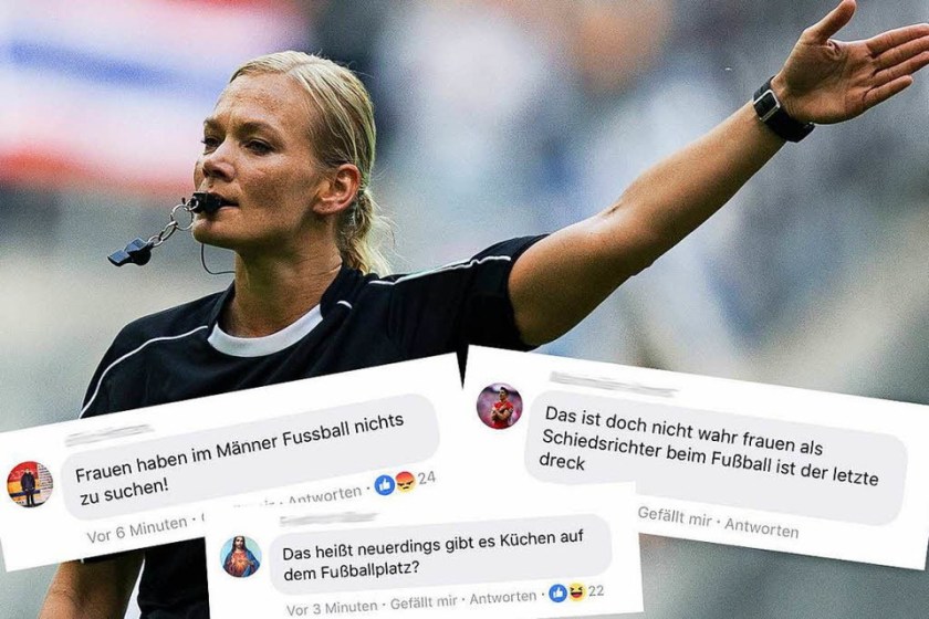 Ein Blick in die Kommentarspalten bei Facebook reicht jedoch aus, um wieder alles zu hinterfragen: Befinden wir uns wirklich im Jahr 2017 oder ein Jahrhundert davor? Ganze sechs Minuten dauert es, dann sind unter dem Beitrag der Sportschau folgende Sätze (Originalzitat) zu lesen: „Das heißt neuerdings gibt es Küchen auf dem Fußballplatz?“, „Die ist ja schon in der 2. Liga völlig überfordert!“, „Davon wird die Küche auch nicht sauber…“, „Frauen haben im Männer Fussball nichts zu suchen!“, „Das ist doch nicht wahr frauen als Schiedsrichter beim Fußball ist der letzte Dreck“. Kurz zusammengefasst: Purer Sexismus.