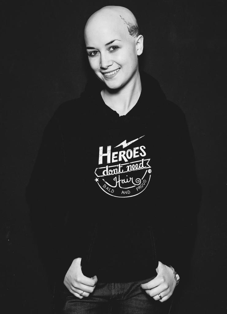 Für mich waren die Löcher auf dem Kopf schlimmer als die Glatze. Ohne Haare macht es sogar Spaß, in den Spiegel zu gucken. Ich sehe zum Beispiel, was für eine tolle Kopfform ich habe. Davor bin ich aufgestanden und habe mir, wenn die Haare nicht saßen oder ich Spliss hatte, Gedanken gemacht, was die Leute denken oder wie ich das weg bekomme. Jetzt sehe ich mich – und nicht das, was ich zu verändern habe. Dass ich so denken kann, habe ich vor allem einer Person zu verdanken: Ohne meine beste Freundin hätte ich es nie soweit geschafft.