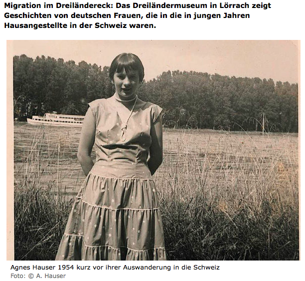 Im 20. Jahrhundert war die Schweiz für viele Frauen aus dem deutschsprachigen Raum ein attraktives Ziel der Zuwanderung: Das zeigt aktuell die Ausstellung im Lörracher Dreiländermuseum „Mädchen, geh in die Schweiz und mach dein Glück!“ im Rahmen des Projekts „Magnet Basel. Migration im Dreiländereck“. Grund war ein chronischer Mangel an Dienstmädchen. Baden und Württemberg waren damals die traditionellen Einzugsgebiete, doch handelte es sich nie um eine rein regionale Naheinwanderung. Pro Jahr reisten 30.000 Deutsche und Österreicherinnen ein, um in einem Schweizer Haushalt zu arbeiten. 1930 war jede vierte Hausangestellte aus dem deutschsprachigen Ausland.